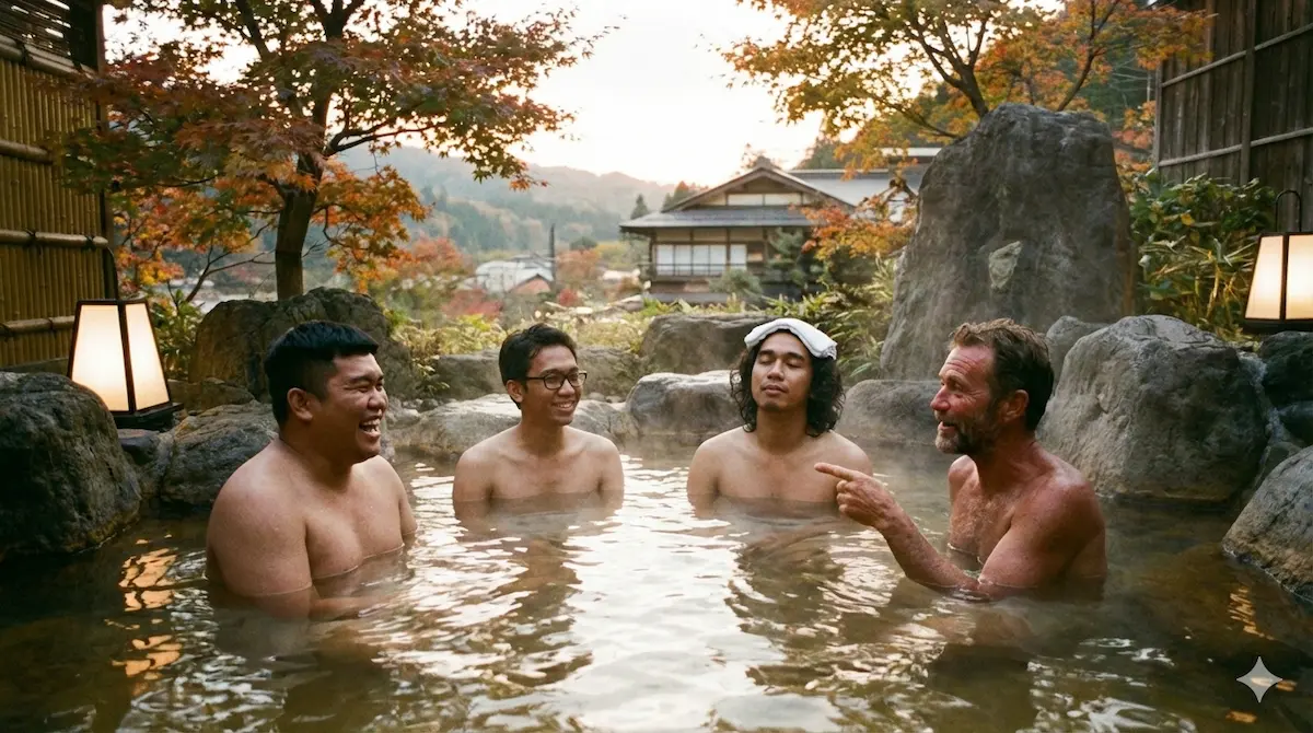 でも、日本人はこれを「裸の付き合い(Hadaka no Tsukiai)」と呼んで大切にしている。